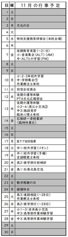 R7.10.31 11月行事予定表を更新しました。